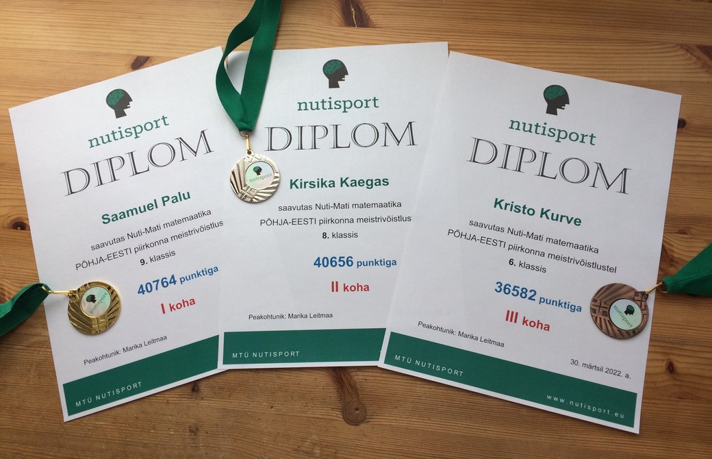 30. märtsil peetud Nuti-Mati matemaatika Põhja-Eesti piirkonna* meistrivõistluste finaalis olid meie õpilased väga tublid – võideti nii esimene, teine kui ka kolmas koht.