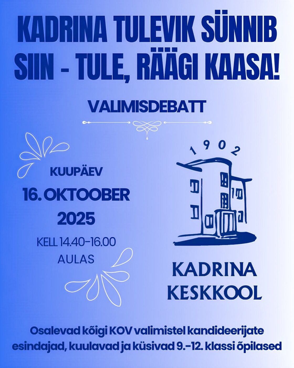 Kadrina Keskkooli valimisdebatt toimub 16. oktoobril