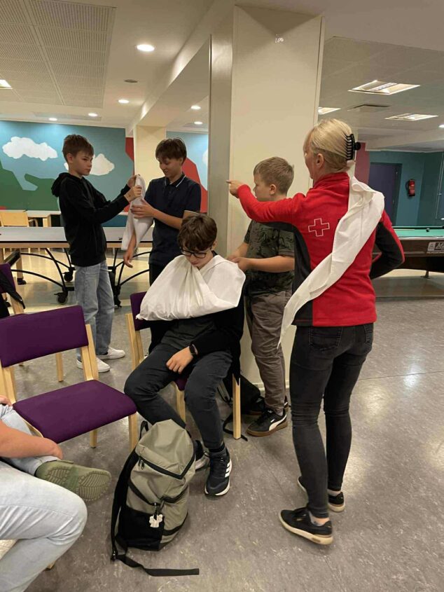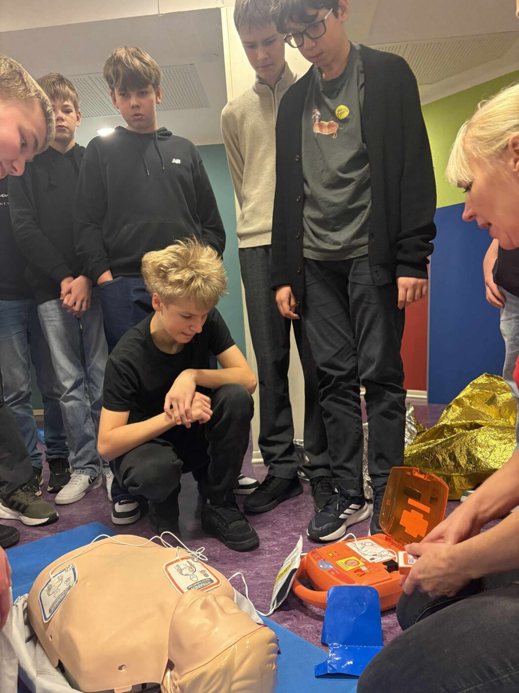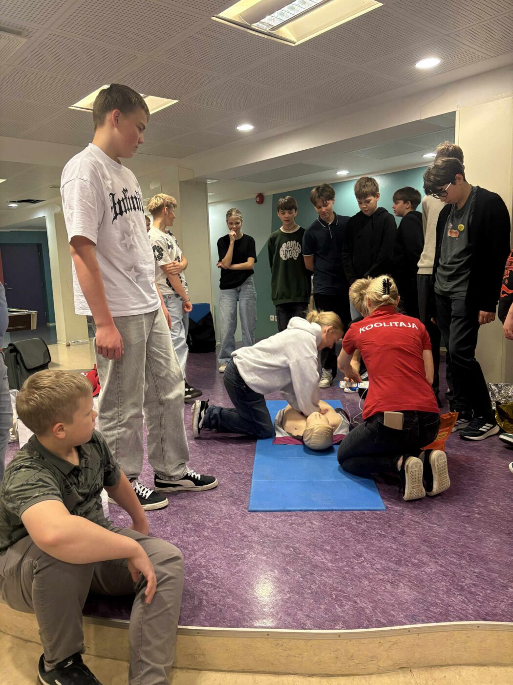 Täna viis Katrin Nõlvak, Punase Risti esindaja, 7.a, 7.b, 7.c ja 8.c klassidele läbi esmaabi koolituse. Koolitusel räägiti, mis on Punane Rist, tuletati meelde esmaabi põhitõed ja arutleti tervise teemadel, sealhulgas toitumise ja une olulisuse üle.