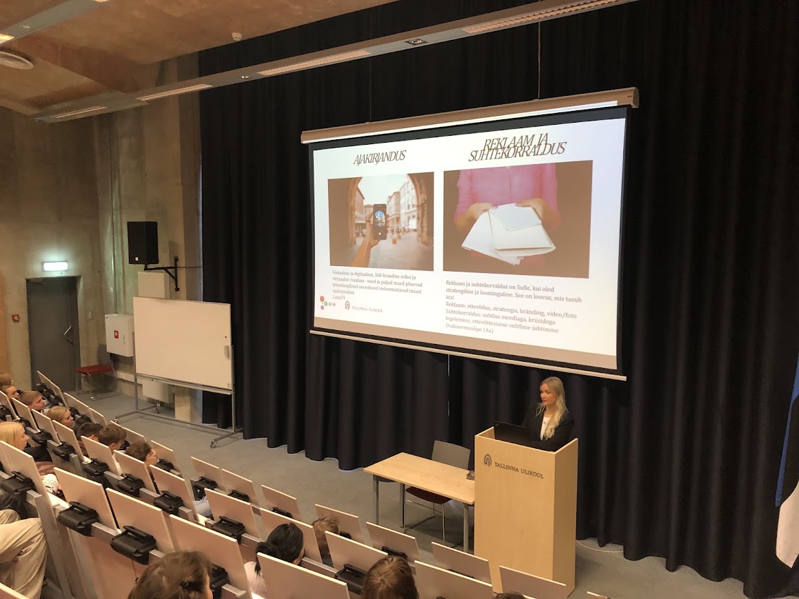 Huso suuna õpilased külastasid 19. novembril Tallinna Ülikooli Balti filmi, meedia ja kunstide instituuti, kus turundusspetsialist Emili Põldsaar tutvustas BFMi pakutavaid võimalusi omandada laiapõhjaline haridus rahvusvahelises õpikeskkonnas. Instituudi õppekavad valmistavad ette tööks mitmetes valdkondades, sealhulgas filmitootmises, televisioonis, uues meedias, kommunikatsioonis, koreograafias, kunstis ja muusikas. Heitsime pilgu mitmesse stuudiosse ja montaažiruumi ning saime teada helisalvestuse võimalustest.