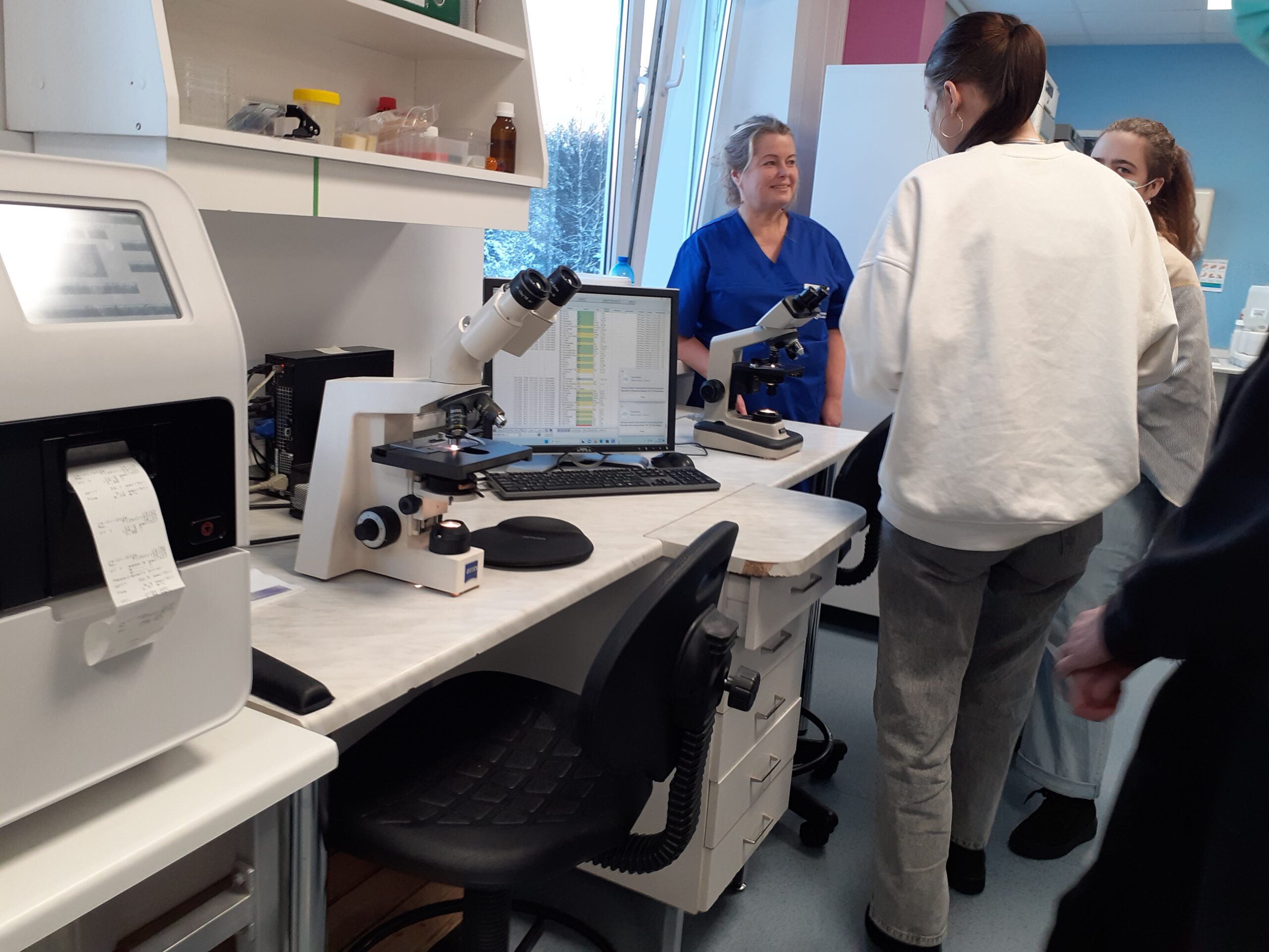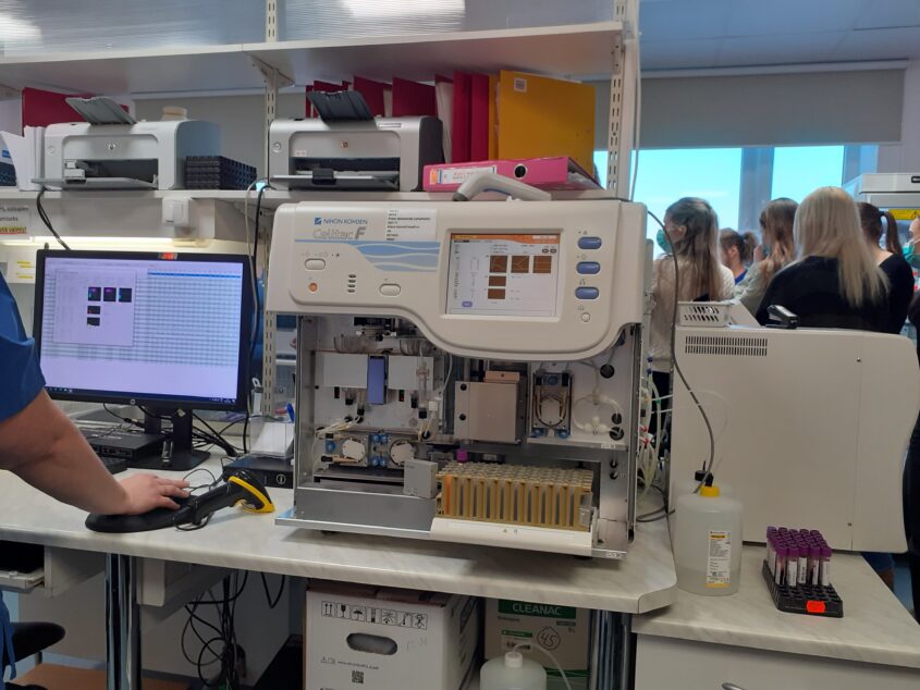 Loodusteaduste õppesuuna õpilased külastasid 14. jaanuaril Rakvere Haigla laborit. Tutvuti labori töökorraldusega ning saadi põhjalikum ülevaade verekeskusest, vererühmade määramisest ning selle vajalikkusest, vereseaduse olulisusest; samuti mikrobioloogia labori tööst – miks on tähtis kindlaks teha patsientide mikroobide kooslus; millised ohud valitsevad seoses nn haiglabakteritega; kui keeruline oli pandeemia aeg labori töötajatele jne. Oli võimalus tutvuda ka labori teiste osakondadega, kus näidati töötamist kaasaegsete analüüsiaparaatidega, millega bioanalüütikud määravad kindlaks proovide erinevad koostised, selgitati aparatuuri tööpõhimõtet, aga näidati ka mikroskoobi all inimese verepreparaate.