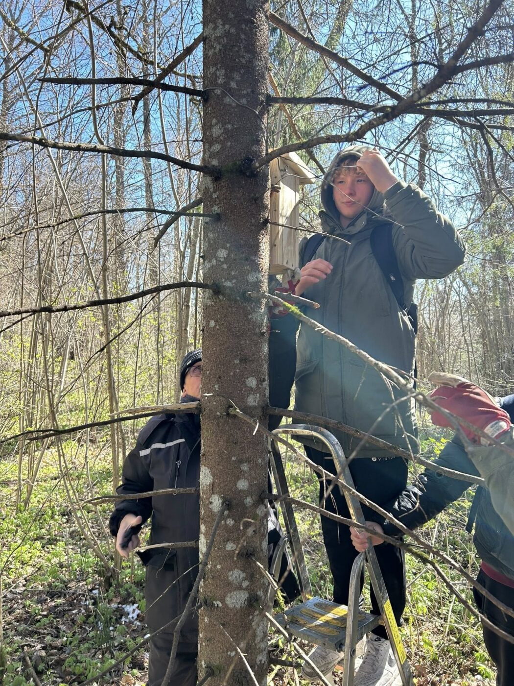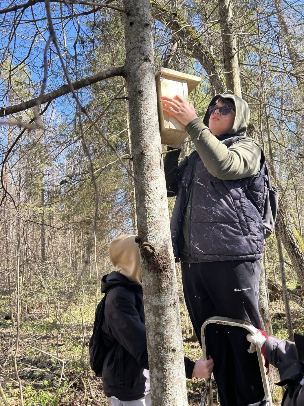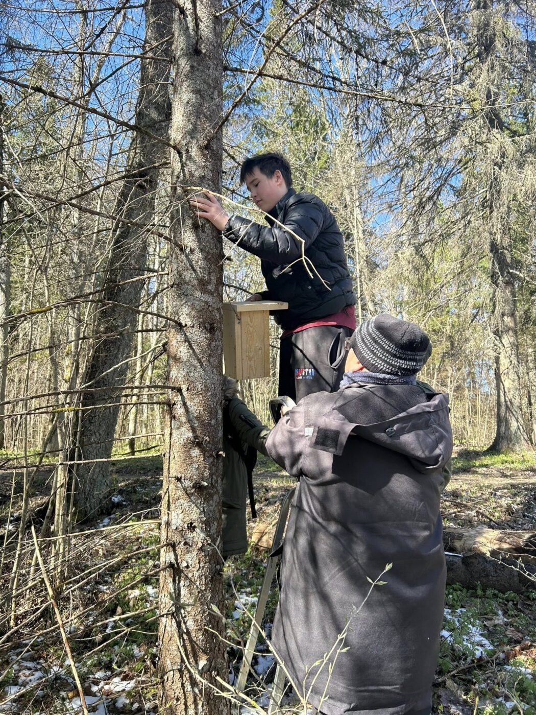 Pesakaste käisid Neerutisse paigaldamas 7.c ja 8.l klasside õpilased koos õpetaja Karl Meosiga. Põnevaid lugusid pajatas ja õigeid puid aitas valida Toomas Talve.