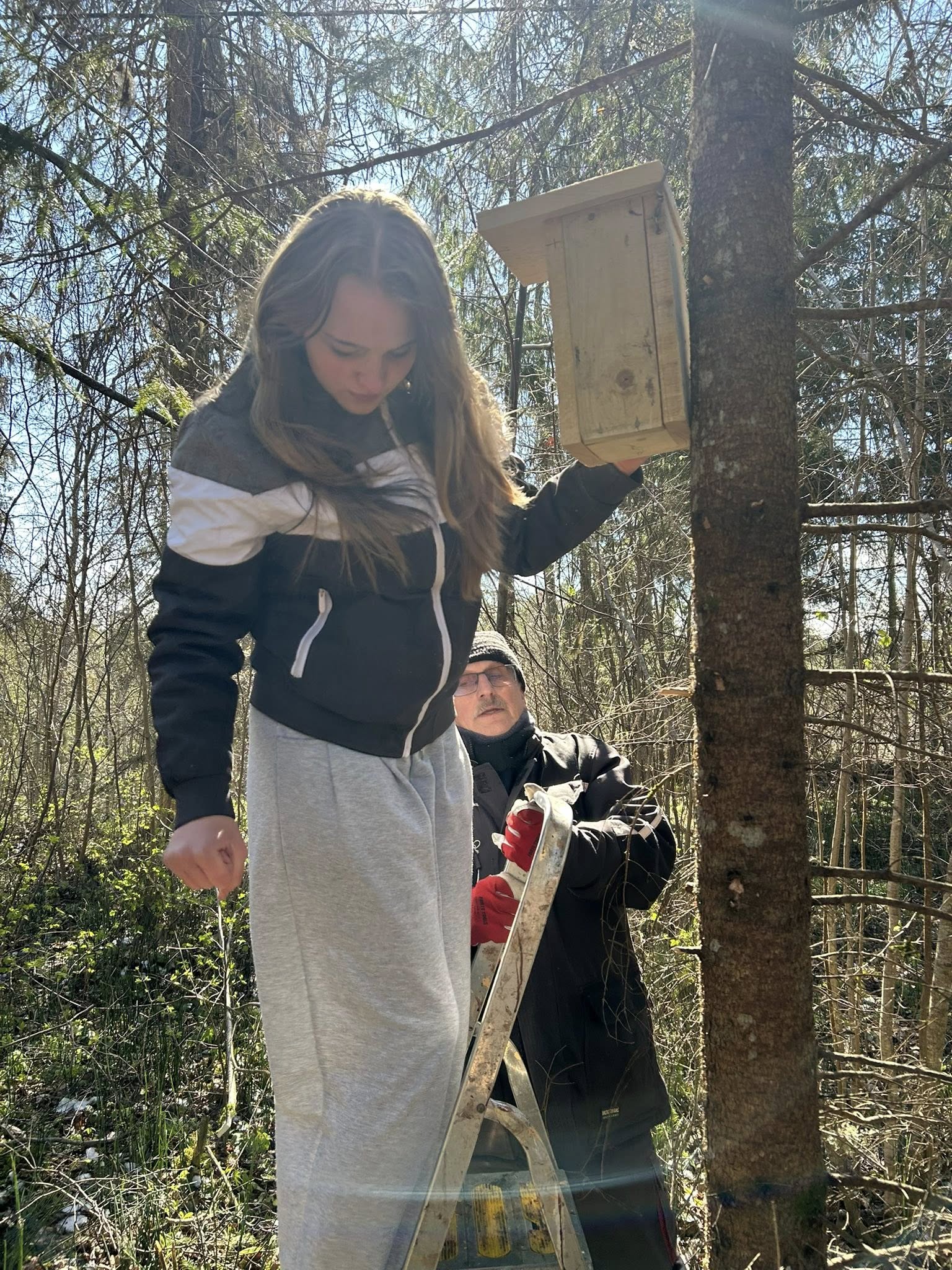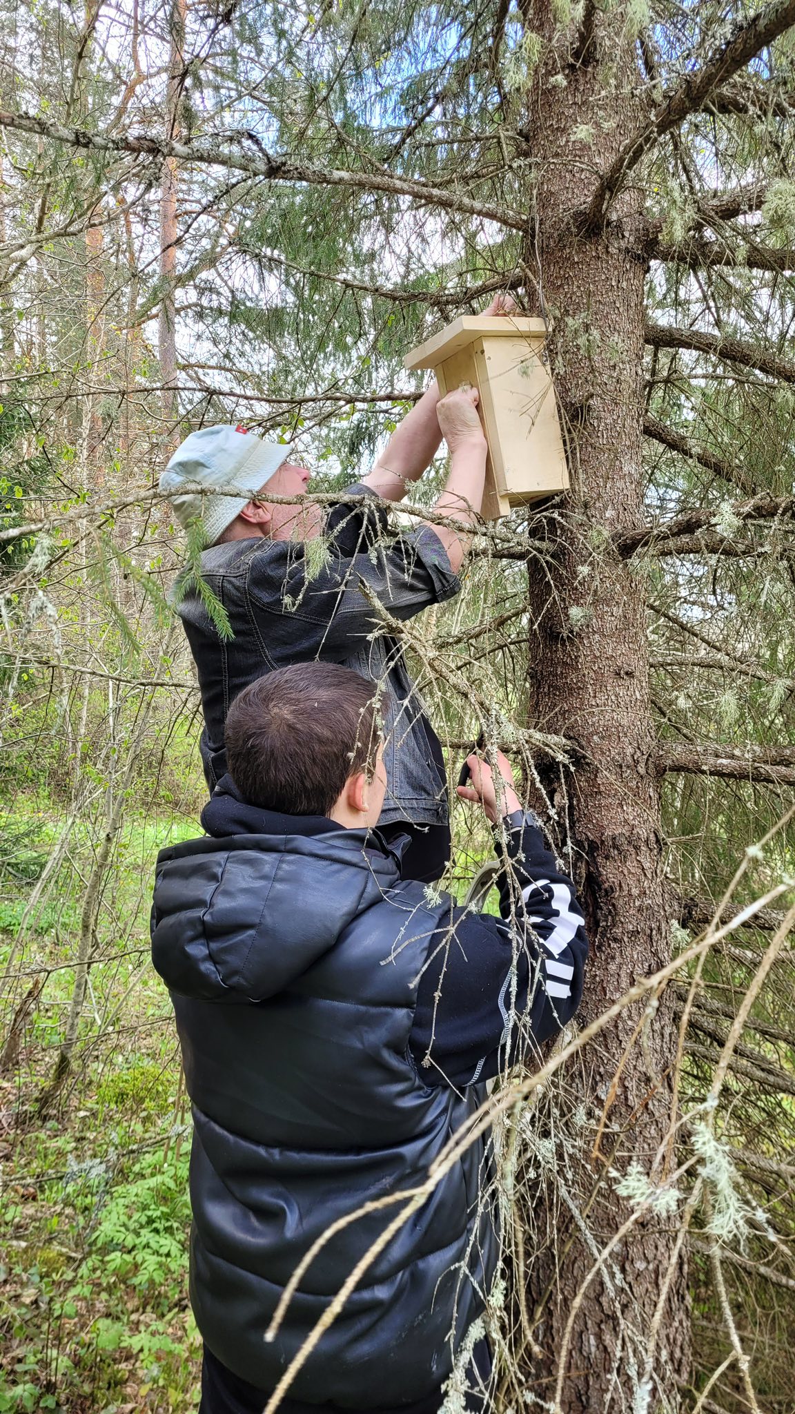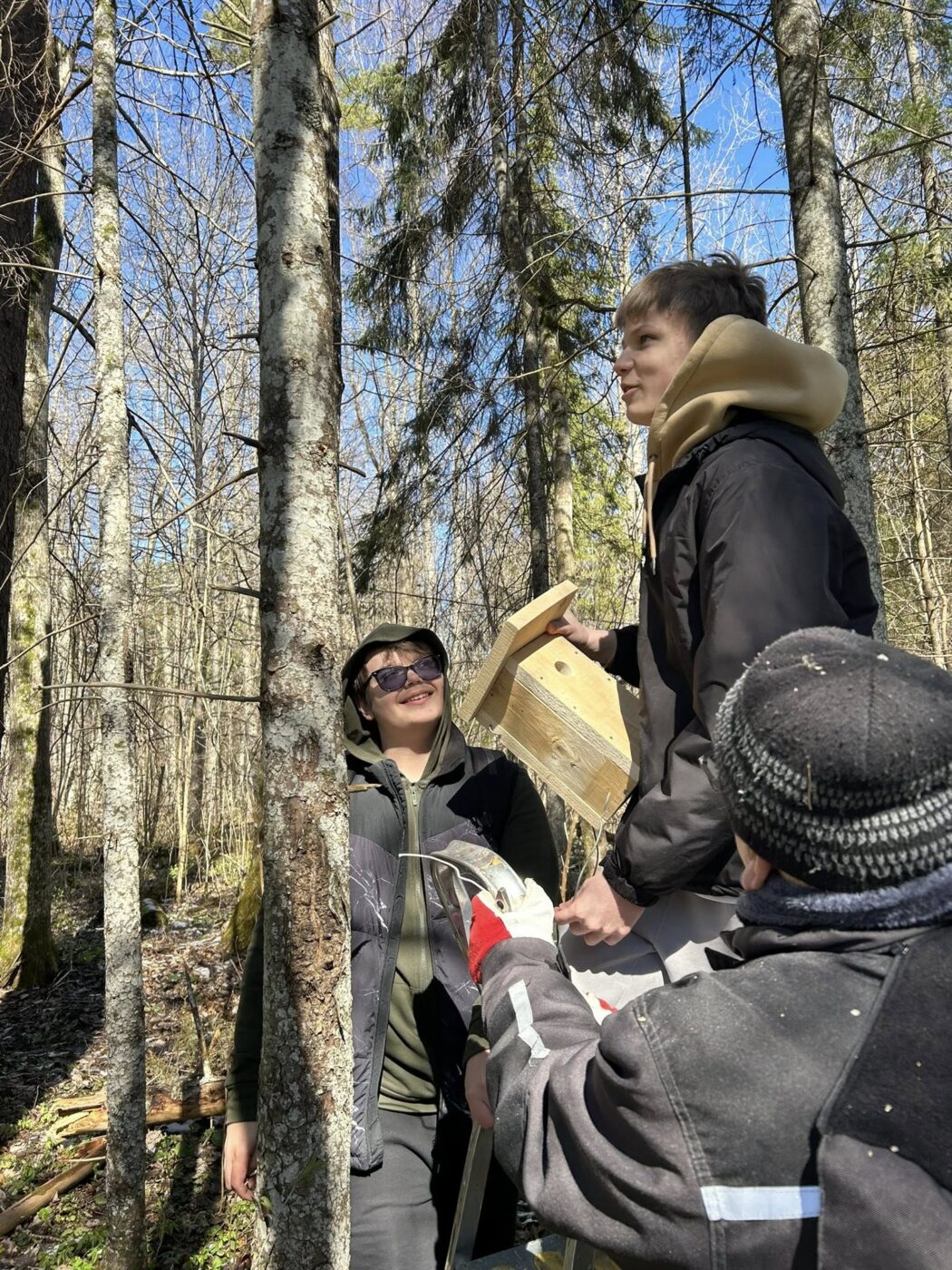 Pesakaste käisid Neerutisse paigaldamas 7.c ja 8.l klasside õpilased koos õpetaja Karl Meosiga. Põnevaid lugusid pajatas ja õigeid puid aitas valida Toomas Talve.